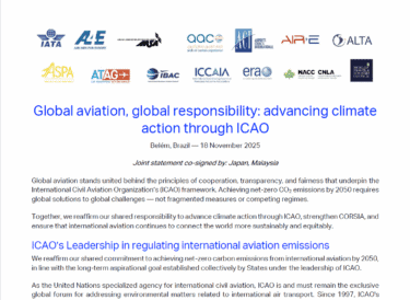 Airlines International Representation in Europe (AIRE) has joined IATA, the governments of Japan and Malaysia, and other leading industry stakeholders as a signatory to the Joint Statement released at COP30.